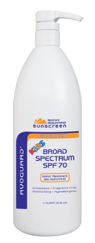Rocky Mountain SPF 70 children distributor pump a liter (32 oz) is a cost effective solution for schools and families. The formula avoguard improvement is ideal for those who are active, while in the sun. Rocky Mountain Sunscreen formulated to be used as a daily lotion protects your skin against harmful UV rays, wind burn and extreme drought. Rocky Mountain sun than 2012 test FDA standards for UVA and UVB broad spectrum protection and reduces the risk of sunburn, skin
